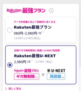 ✅ 楽天モバイル「最強プラン」とU-NEXTがセットで 3,278円(税込)