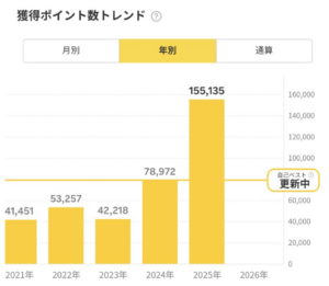 2025年はこれまでで“歴代最高”のポイント獲得に。正直、このポイント数を獲得している一般ユーザーはほぼいないと思います(笑)