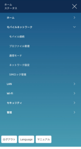 ログイン後は右上のメニューアイコンをタップし、モバイルネットワーク → プロファイル管理 → 新規プロファイル作成を選択します。